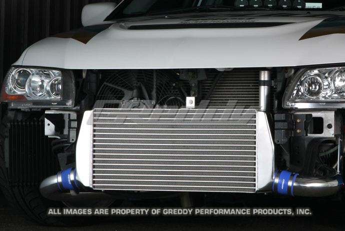 GReddy intercooler kit spec R till Mitsubishi Evo. Dessa intercoolerkit är bland de absolut finaste på marknaden. TIG svetsade gavlar på cellpaketet som har turbolatorer för bästa kylning. Made in Japan. Kittet innehåller alla monteringsdelar, rör, klämmor osv som behövs. Batteriet måste flyttas eller bytas till ett mindre.