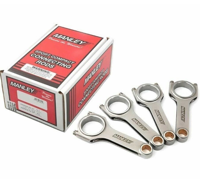 Manley smidda stålstakar i H-profil. ARP bult ingår. Dessa har hål i lilländan för 22,5mm diameters kolvbult, samma som original kolvar har.