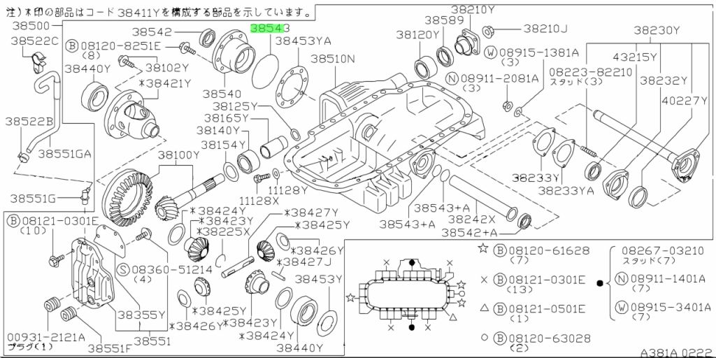 Nissan packbox kamaxel / Vevaxeltätning främre