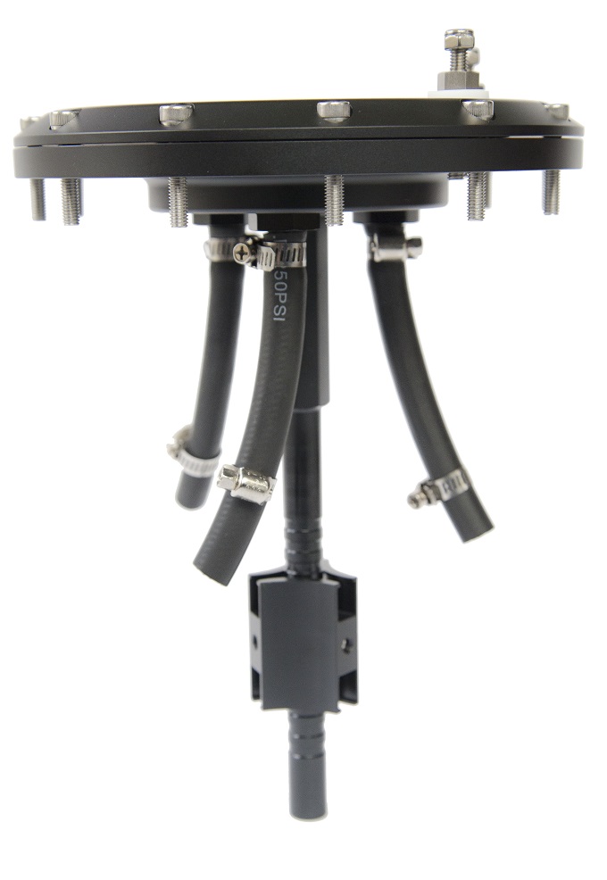 Bränslepumpsarmaturen är tillverkat så den samlar samtliga pumpar till en kammare för att endast få en utgång. Detta sparar mycket plats och pengar då man slipper Y-kors, extra slang och AN-kopplingar m.m. Det blir endast 1 ledning fram till motorn och ledning tillbaka från motorn oavsett om du använder 1 eller 3 bränslepumpar. Använder man däremot dubbla spridarbryggor (V-motorer) så får man tyvärr komplettera med ett Y-kors.